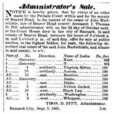 Pitt, Administrator, Bannack City