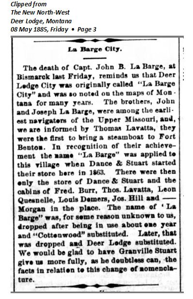 Quesnelle, who were living in Cottonwood, believe the LaBarge, Harkness,