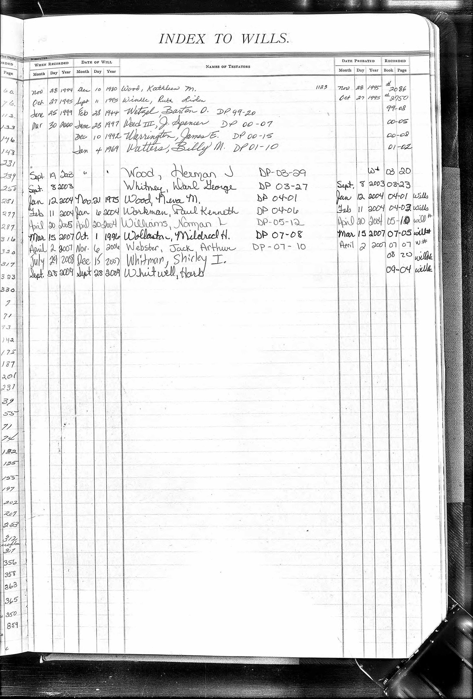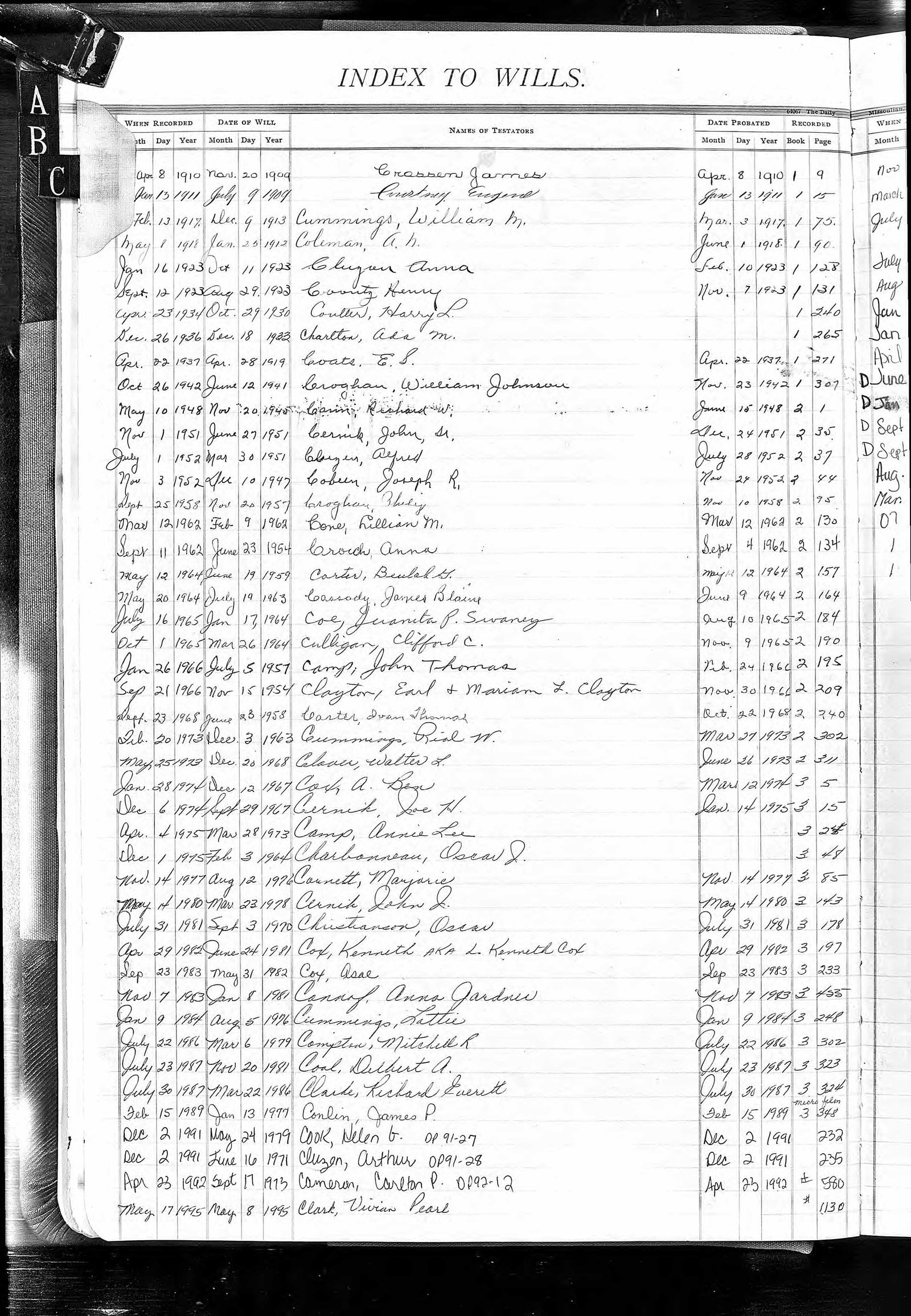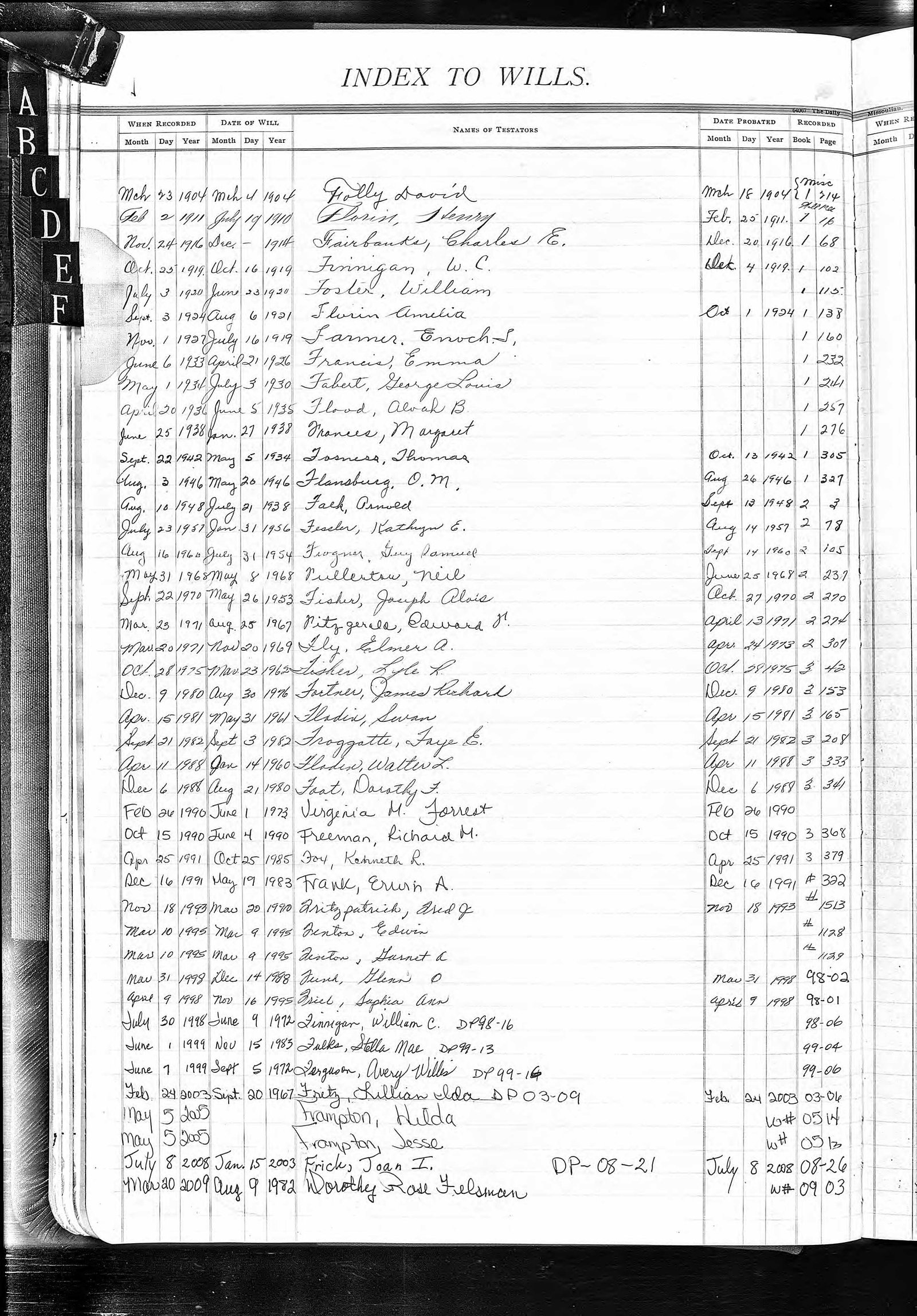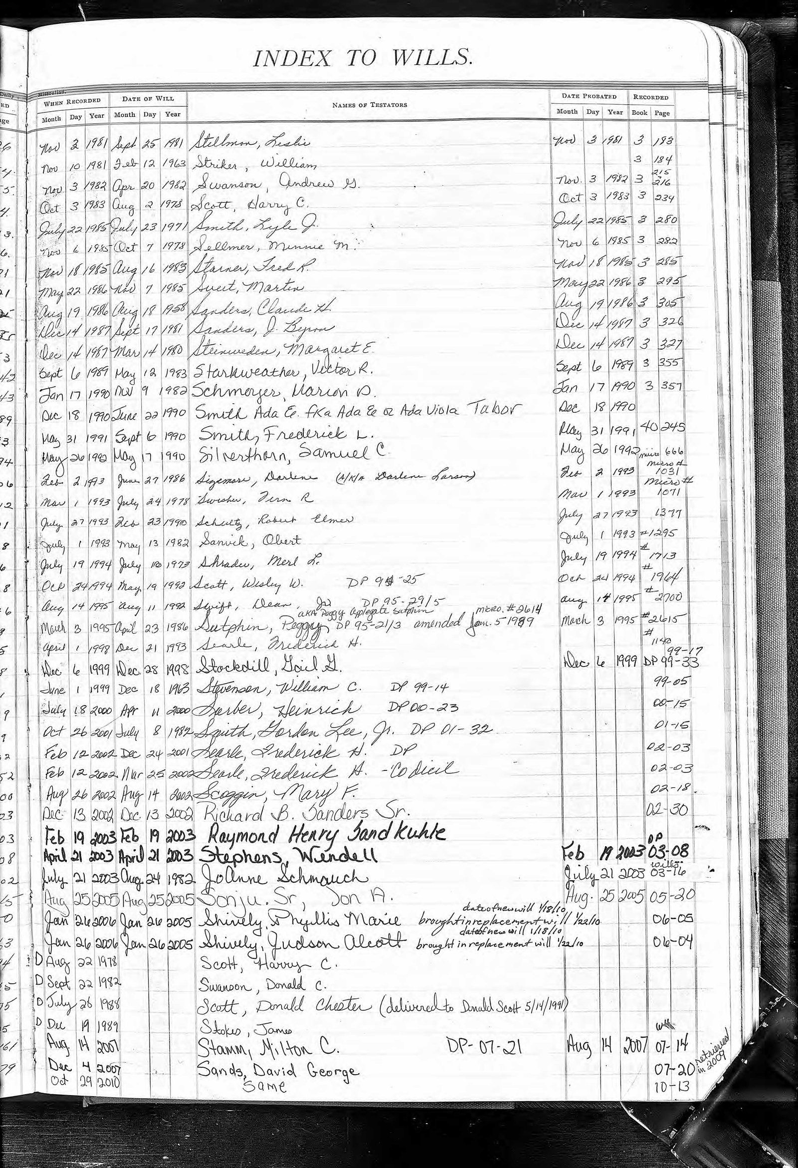Will Index Pages Click on Image to Enlarge. Once image is enlarged, you can click on larger image to expand. Use your back button to return to this page.