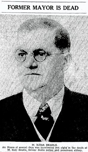 M. Kerr Beadle, 60, former Butte mayor and prominent citizen of the Mining city for many years, died at 9:30 o’clock last night at St. James Hospital following an illness of one week.  He had only recently been appointed assistant attorney general of Montana.