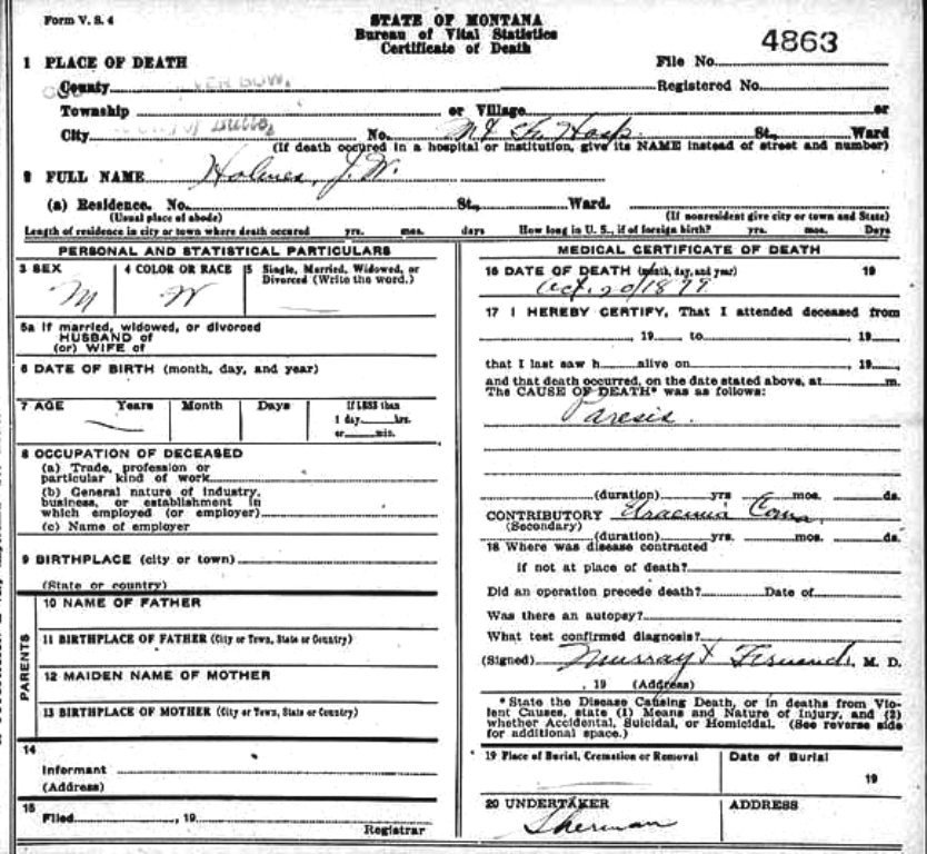 d. 4/1/1893 - Butte, Silver Bow County, Montana